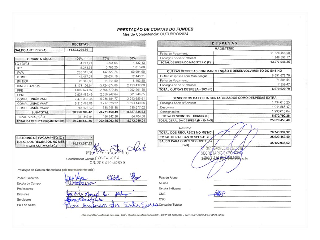 Prestação de Contas Outubro 2024