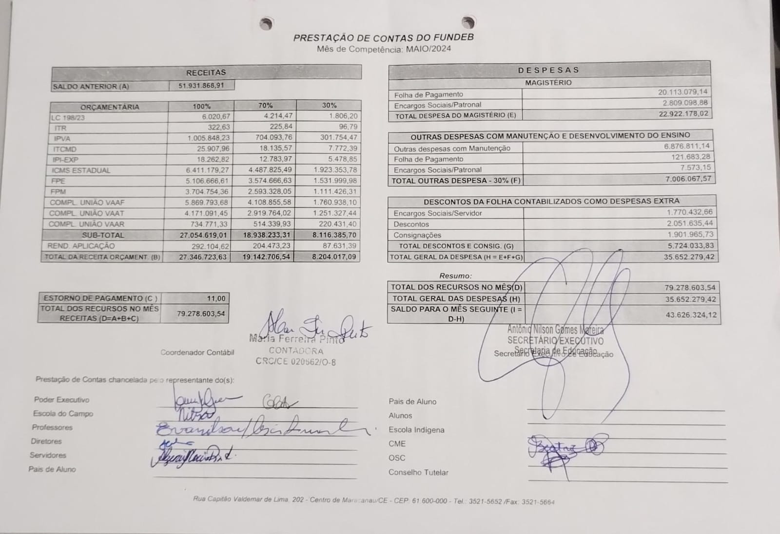Prestação de Contas Maio 2024