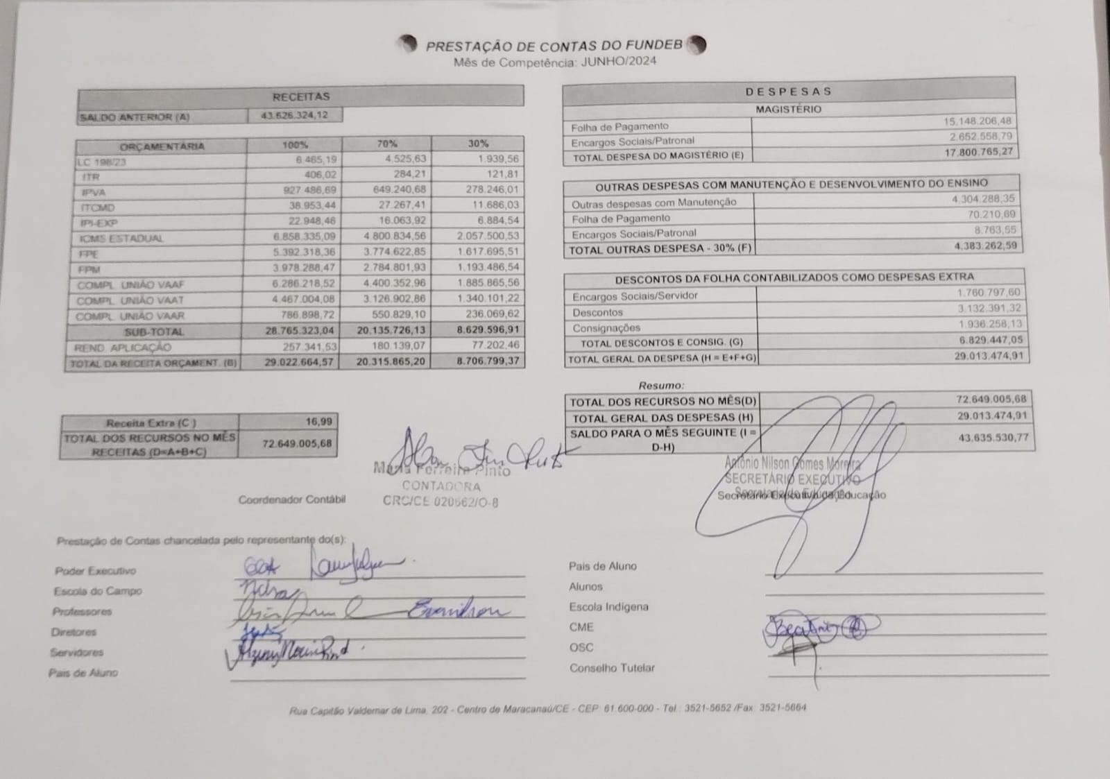Prestação de Contas Junho 2024